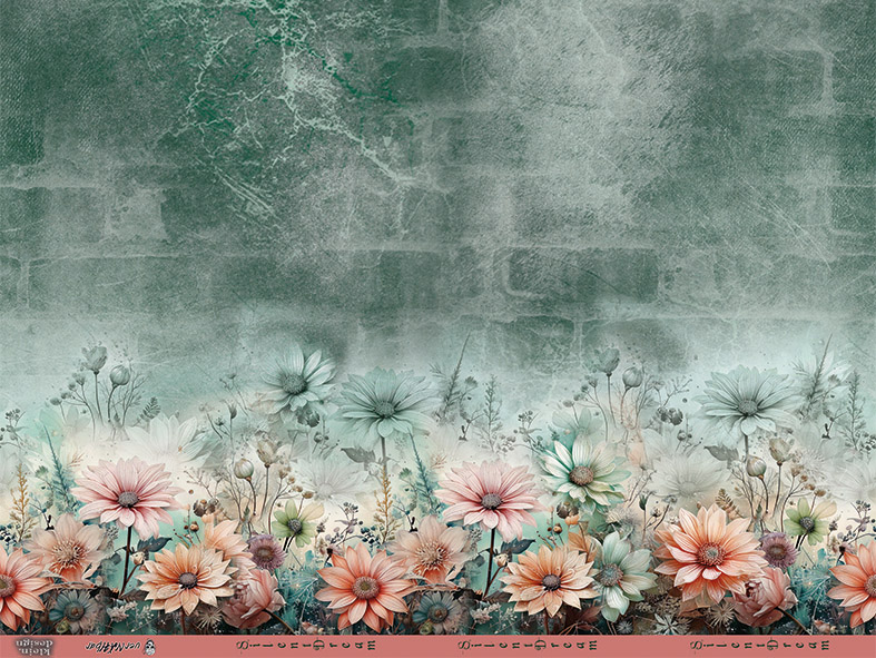 Die floralen Elemente wirken wie aus einem stillen Traum: leicht verwaschen, natürlich und zurückhaltend. Zarte Gräser und Blütenstiele fügen sich dezent ein und verleihen der Bordüre Tiefe, ohne dominant zu sein. Der ruhige obere Bereich sorgt für ein ausgewogenes Gesamtbild und lässt der Bordüre Raum, ihre Wirkung zu entfalten.