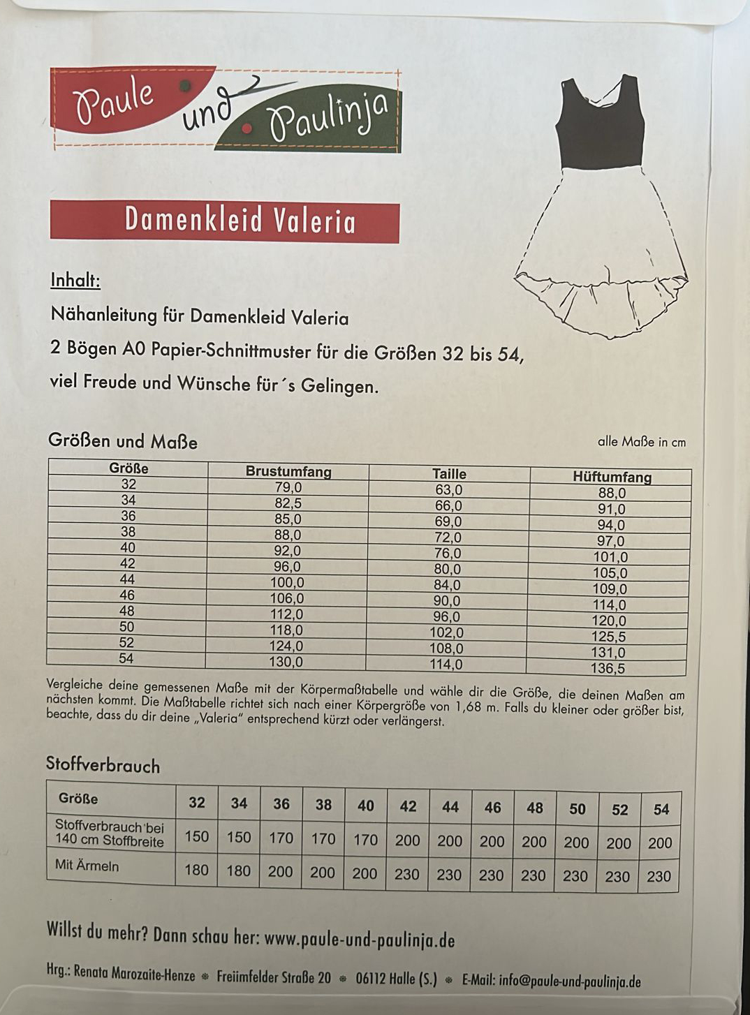 Damenkleid  "Valeria" Papierschnittmuster 32-54