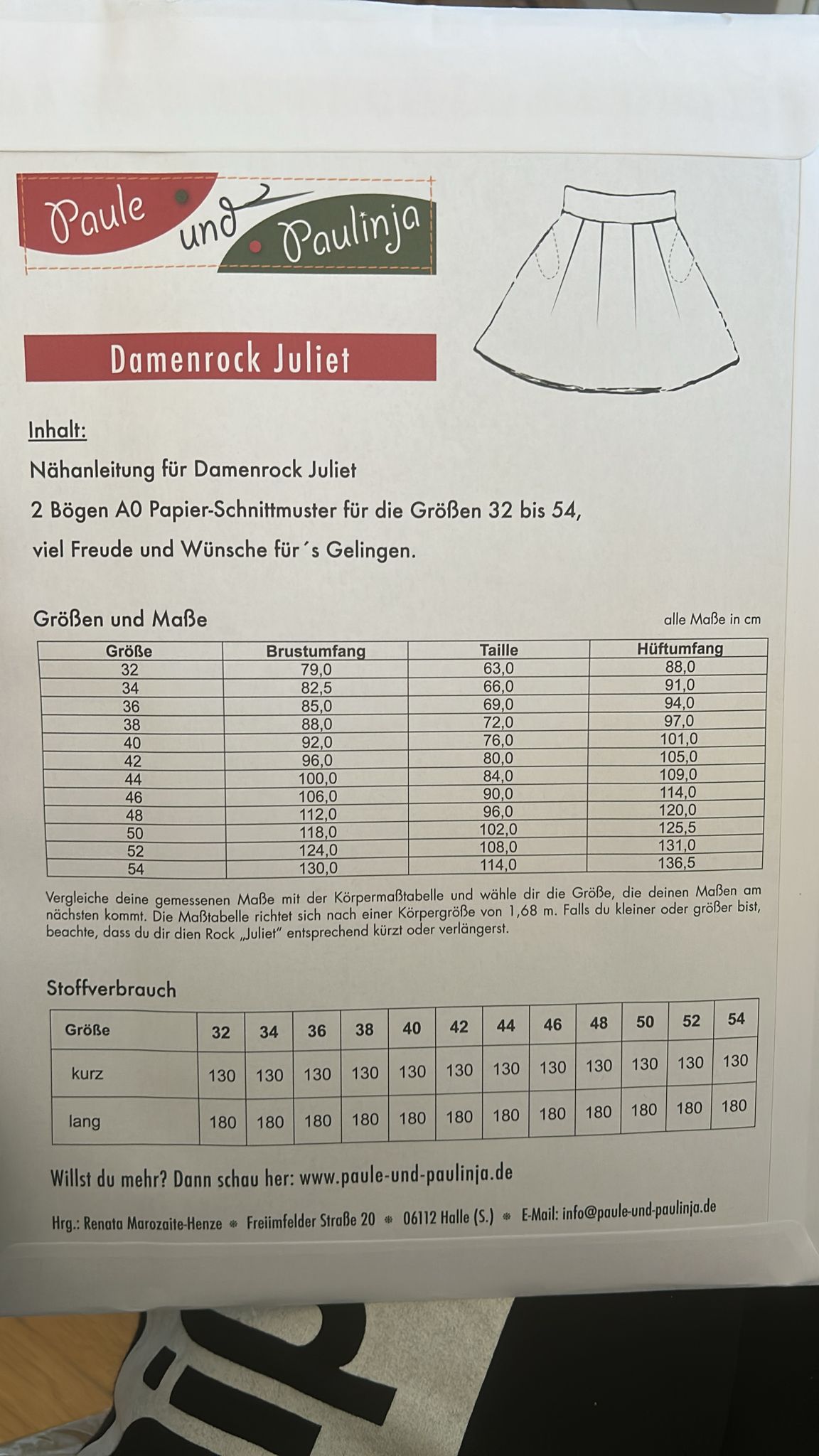 Damenrock  "Juliet" Papierschnittmuster 32-54