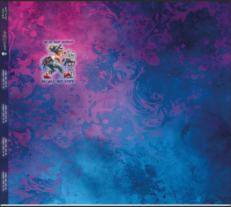 Dieses außergewöhnliche Jersey Panel „Die ist nicht verrückt, die will nur Stoff“ ist ein echtes Highlight für alle Nähbegeisterten. Das farbintensive, abstrakte Design in Blau-, Lila- und Pinktönen wird durch das humorvolle Motiv perfekt ergänzt und sorgt für einen einzigartigen Look.