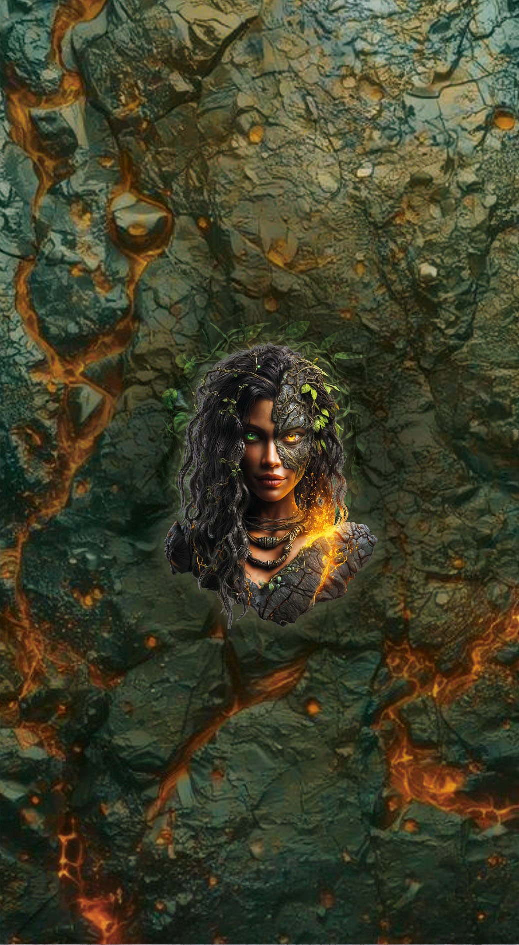Das Kunstleder-Portemonnaie-Paneel (22 × 40 cm) „Dschungeltochter“ vereint Naturkraft, Mystik und Stärke. Die intensiven Grüntöne und organischen Strukturen schaffen eine tiefe, lebendige Wirkung.