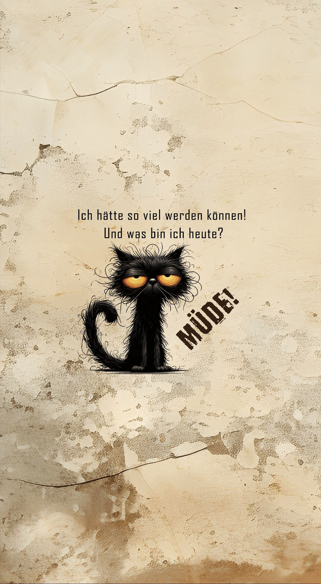 Ein humorvolles Kunstleder-Portemonnaie-Paneel (22 × 40 cm) mit einer grimmig-charmanten Katze und frechem Spruch. Perfekt für alle mit Ironie, Selbsthumor und einem Augenzwinkern durchs Leben gehen.