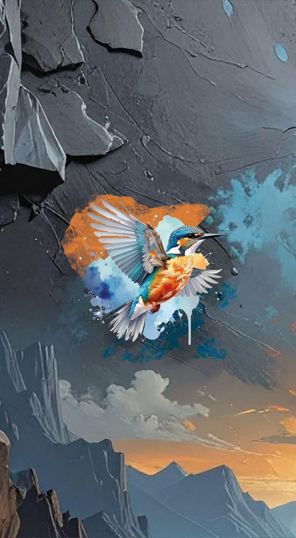 Dieses Kunstleder-Portemonnaie-Paneel (22 × 40 cm) zeigt einen farbenfrohen Eisvogel im modernen Aquarell-Stil. Die lebendigen Farben treffen auf einen rauen Hintergrund und schaffen einen spannenden Kontrast.