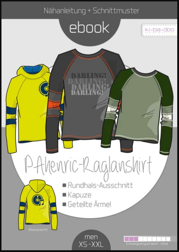 Ein Raglanshirt für Herren in legerer Weite. Blitzschnell genäht. Die Ärmel haben einen Patch, der ihnen eine tolle Form gibt. So lassen sich wunderbar Unistoffe zusammenpatchen. Henric kann als Langarm- und als Kurzarmvariante genäht werden. Das Schnittmuster ist super flexibel.