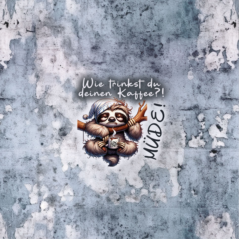 Motiv: Faultier mit Kaffee & lustigem Spruch
