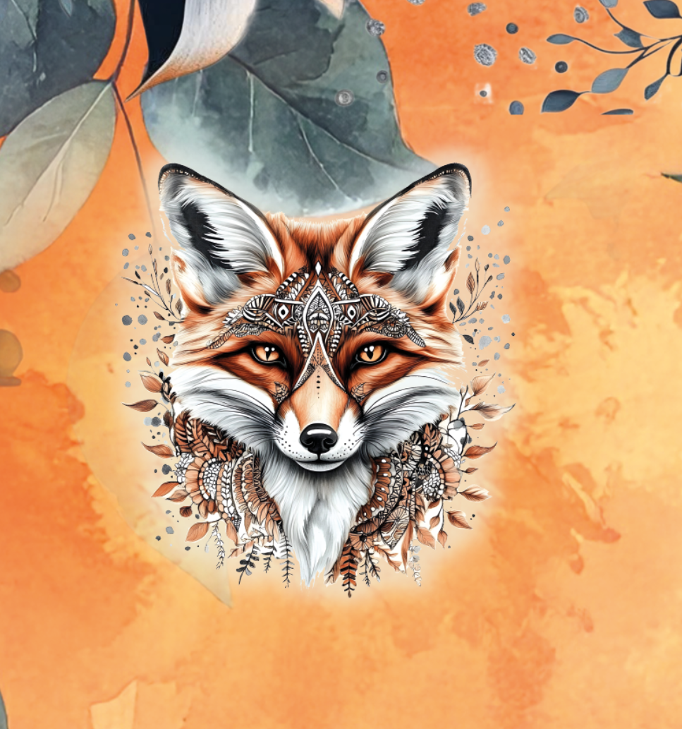 Dieses ausdrucksstarke Stoffpanel aus French Terry verbindet natürliche Eleganz mit einer starken, freien Botschaft. Im Mittelpunkt des Designs steht ein detailreich illustrierter Fuchs, der für Intuition, Freiheit und innere Stärke steht – ein echtes Symbol für eine wilde Seele.